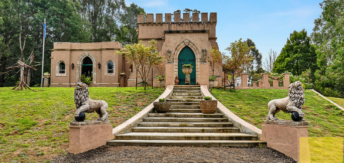 This two-bedroom house is located in regional Victoria, and it is designed to resemble a miniature medieval castle.